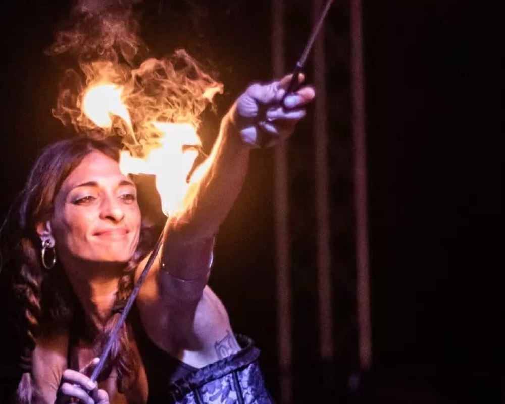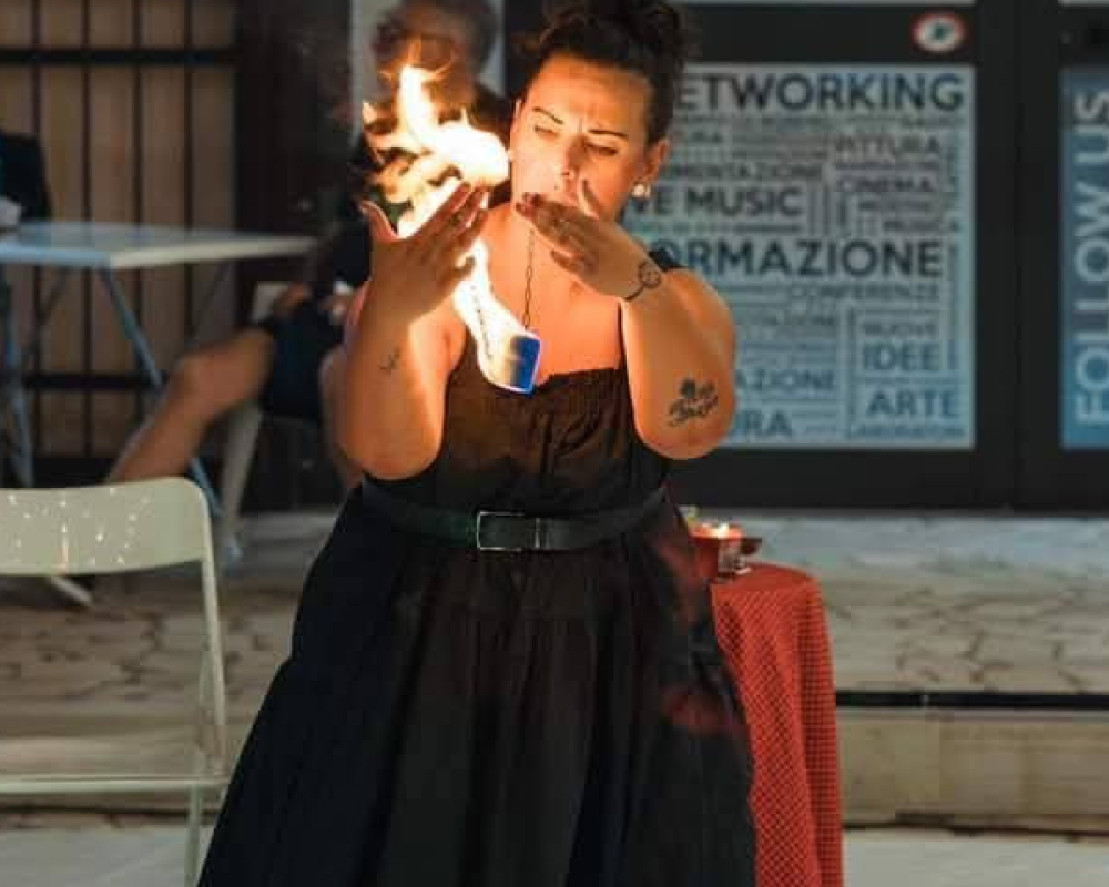 Spettacolo di manipolazione, danza ed effetti mistici attraverso l’ elemento del fuoco.